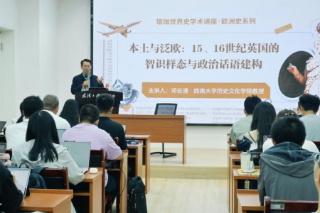 2025年10月11日下午,西南大学历史文化学院世界史系主任邓云清教授应邀为我院师生作了题为“本土与泛欧:15、16世纪英国的智识样态与政治话语构建”的精彩讲座。本次讲座为“珞珈世界史学术讲座·欧洲史系列”讲座之一,由熊芳芳老师主持,蒋焰等老师,以及世界史专业多名本科生和研究生到场聆听。