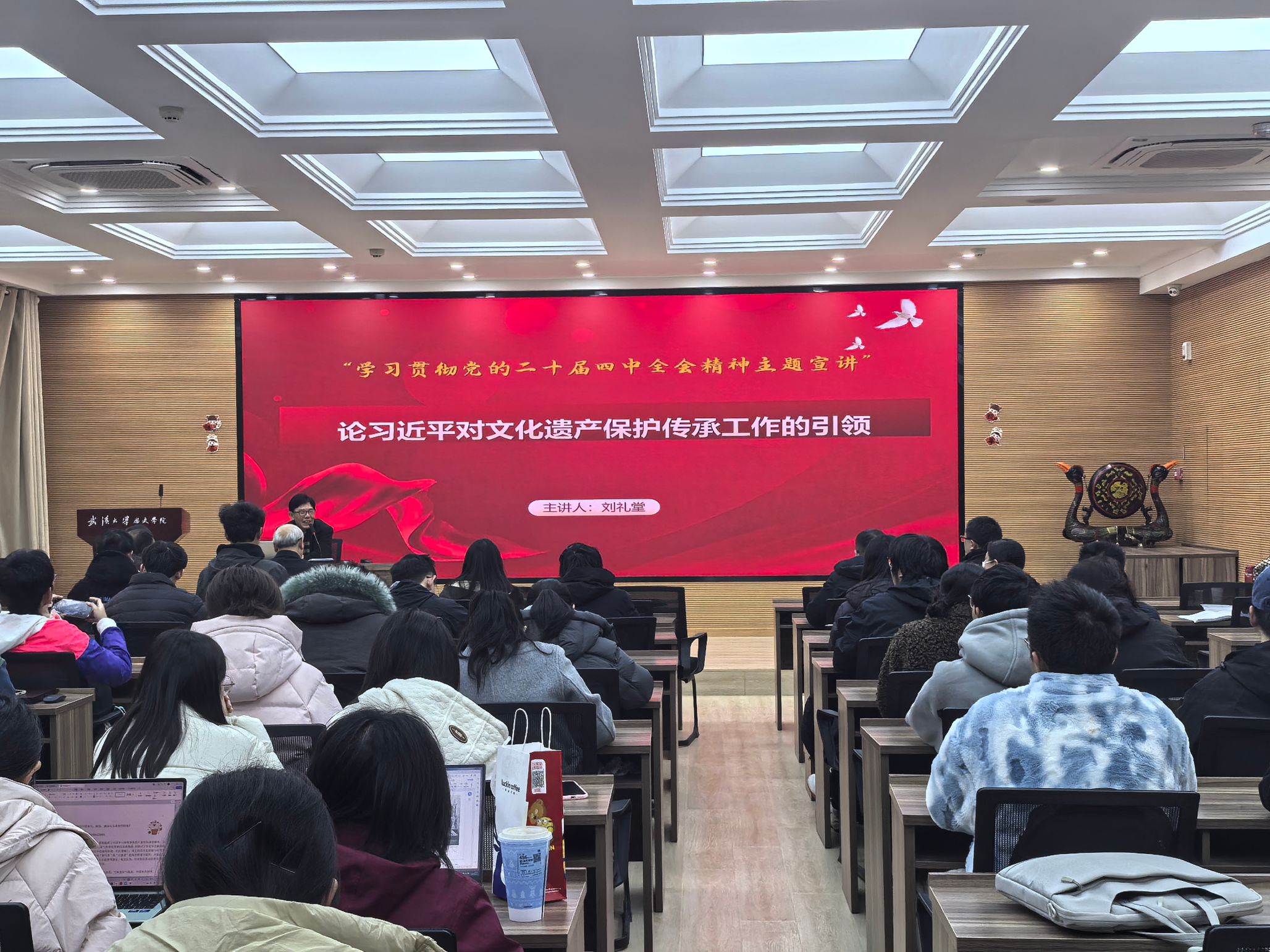 12月17日,历史学院在学院101会议室举办学习贯彻党的二十届四中全会精神专题宣讲会。本次宣讲会以“论习近平对文化遗产保护传承工作的引领”为主题,邀请武汉大学历史学院教授、博士生导师,原武汉大学历史学院党委书记刘礼堂作专题辅导报告。学院党委负责人及师生代表参加学习。