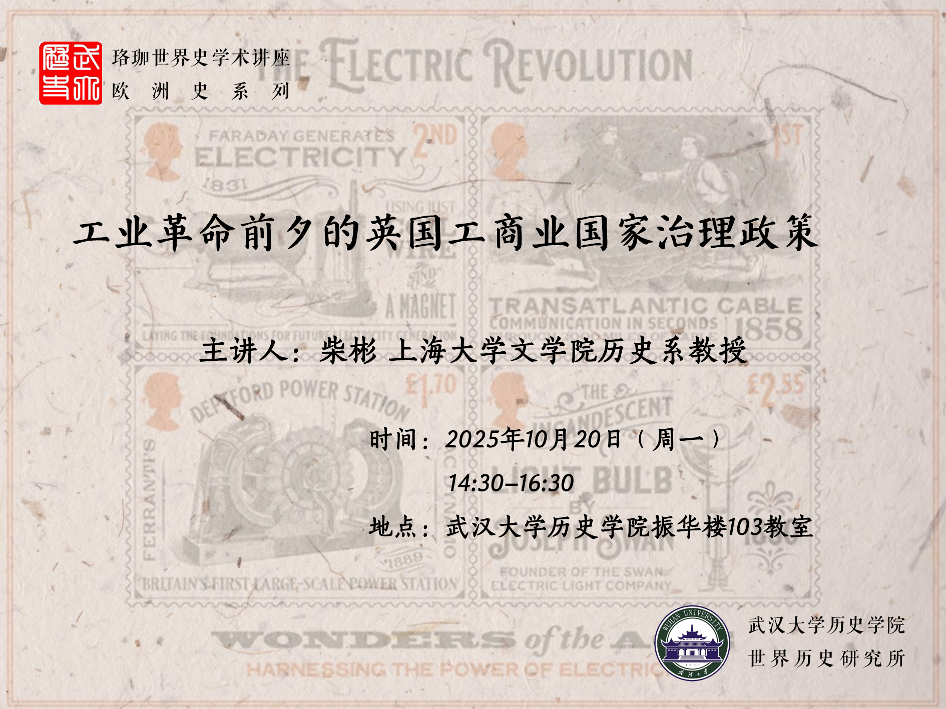 讲座简介:作为世界历史上第一个工业化国家,英国之所以能够率先实现工业化,与工业革命前夕英国政府的工商业治理政策密不可分。当时英国政府凭借融贸易保护、工业扶植、国家治理为一体的重商主义,依靠国家政权对经济活动的持续扶持和治理,为后来的工业化打下了坚实的基础,成就了19世纪英国 “世界工厂”的地位。工业革命前夕英国的工商业治理政策具有过渡性的特征。一方面受中世纪以来的历史传统的影响,体现出封建家长制式的绝对主义政府管制的特点,具有保守性的一面;另一方面也显示出向工业化福利政府转变的初步表征,逐步表现出重视民生的积极性的一面。而这种过渡性特征,又是由正处于从封建专制政体向近代新型民族国家转型的英国国家政府呈现出的过渡形态所决定的。