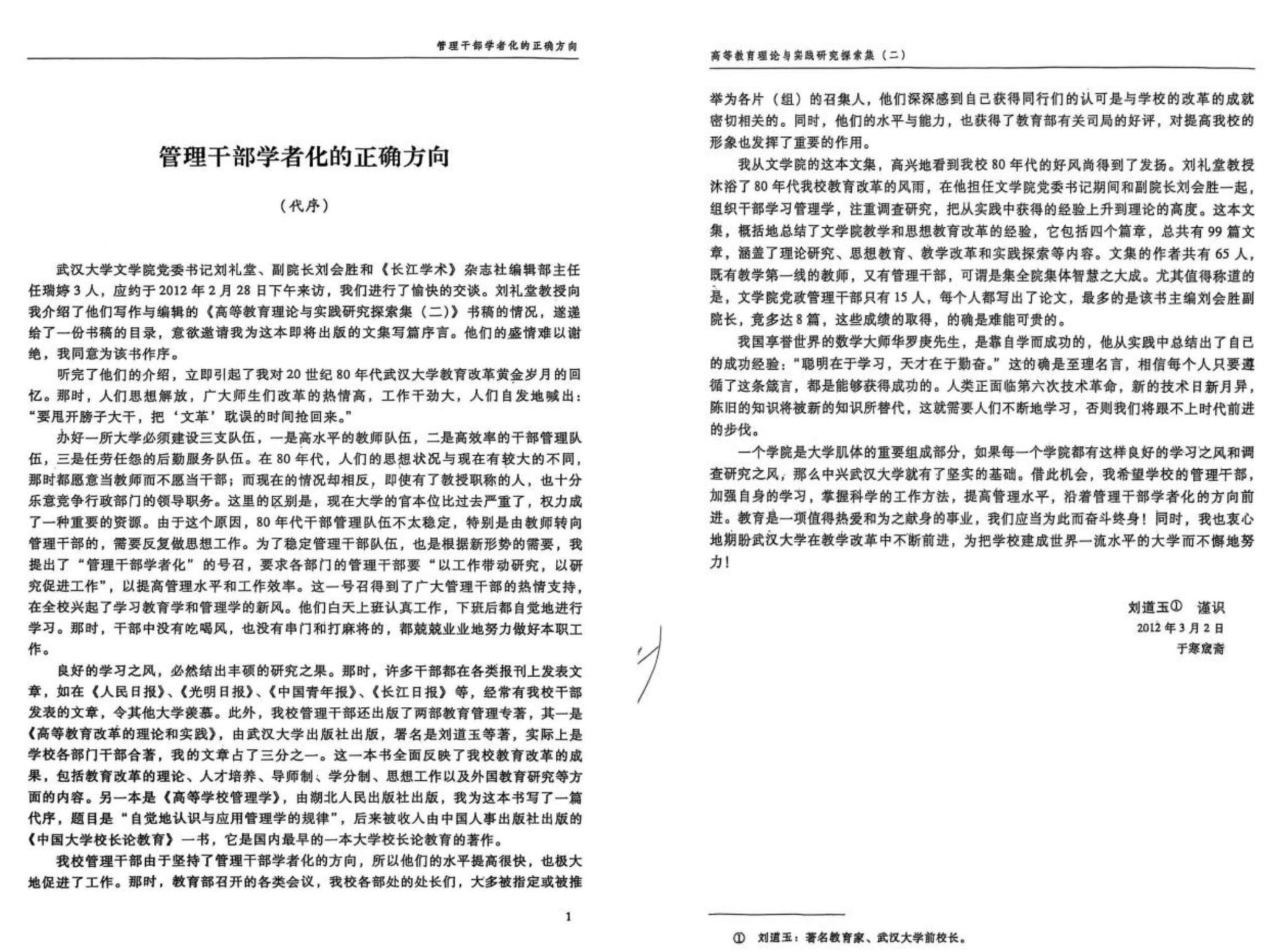 大学毕业留校后,我几乎每年春节去看望老校长,特别是深受他的教诲,在高等教育管理理论及实践探索上有了肤浅的认识,我先后主编二本高等教育管理理论与实践研究论文集,每当结集出版之前就恳请老校长作序,当时他已逾耄耋之年,毫无犹豫的为学生把墨,与其说请老校长做序,实际上是想继续聆听他的谆谆教诲及其富有哲理的传灯!
