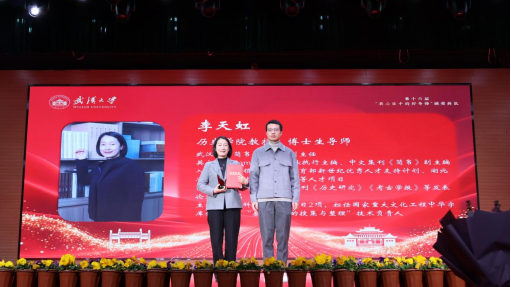 颁奖典礼上,历史学院博士后熊佳晖作为代表,为恩师李天虹教授颁发“我心目中的好导师”奖项。李天虹教授首位上台领奖,其深耕简牍文献与古文字研究的学术成就及育人情怀赢得现场热烈掌声。谈及简牍研究的独特价值,李天虹教授指出简牍作为考古出土的珍贵文化遗产,内容广泛覆盖社会科学和自然科学多个领域,是研究中国历史与传统文化的重要宝藏。她欣喜于青年学子对简牍研究兴趣渐浓,鼓励大家践行习近平总书记关于古代简牍的重要论述,传承文化基因、促进文明互鉴,并以“天道酬勤,功不唐捐”寄语学子,在学习实践中传承珞珈薪火,勇克学术难关。