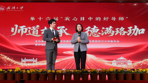 2025年12月29日(星期一)晚七时,武汉大学第十六届“我心目中的好导师”颁奖典礼在人文馆隆重举行。校长张平文与相关职能部门负责人出席本次典礼,我院刘安志教授作为往届“我心目中的好导师”获奖代表受邀观礼。各院系师生代表欢聚一堂,共同向获奖的9位“我心目中的好导师”致礼。