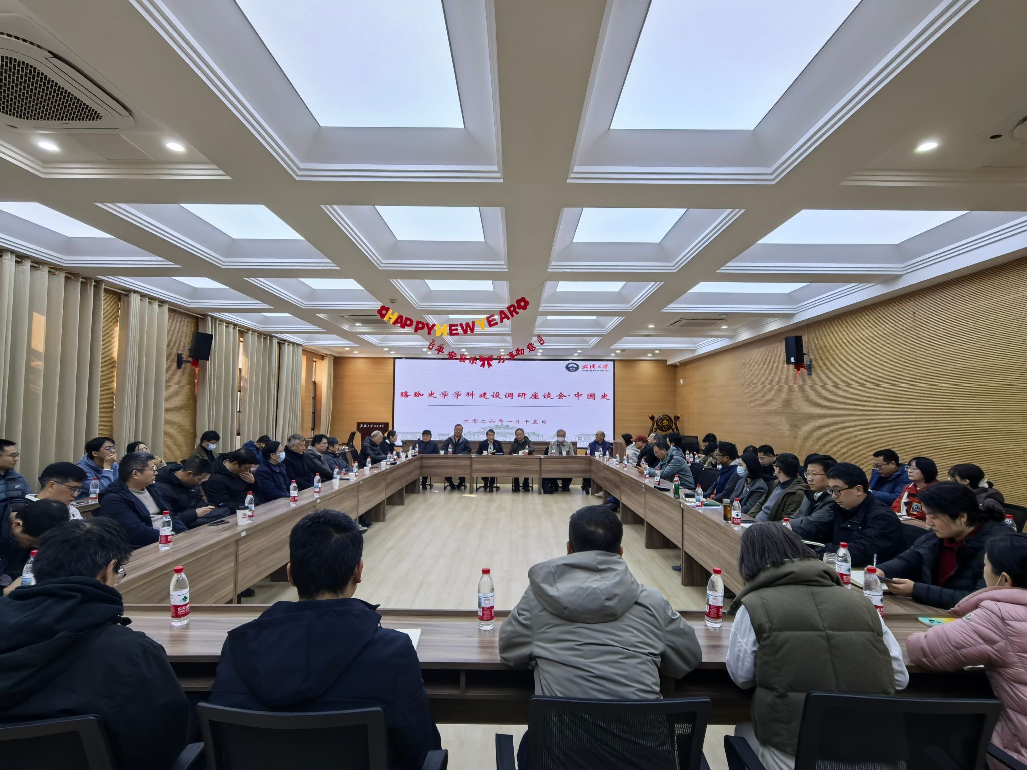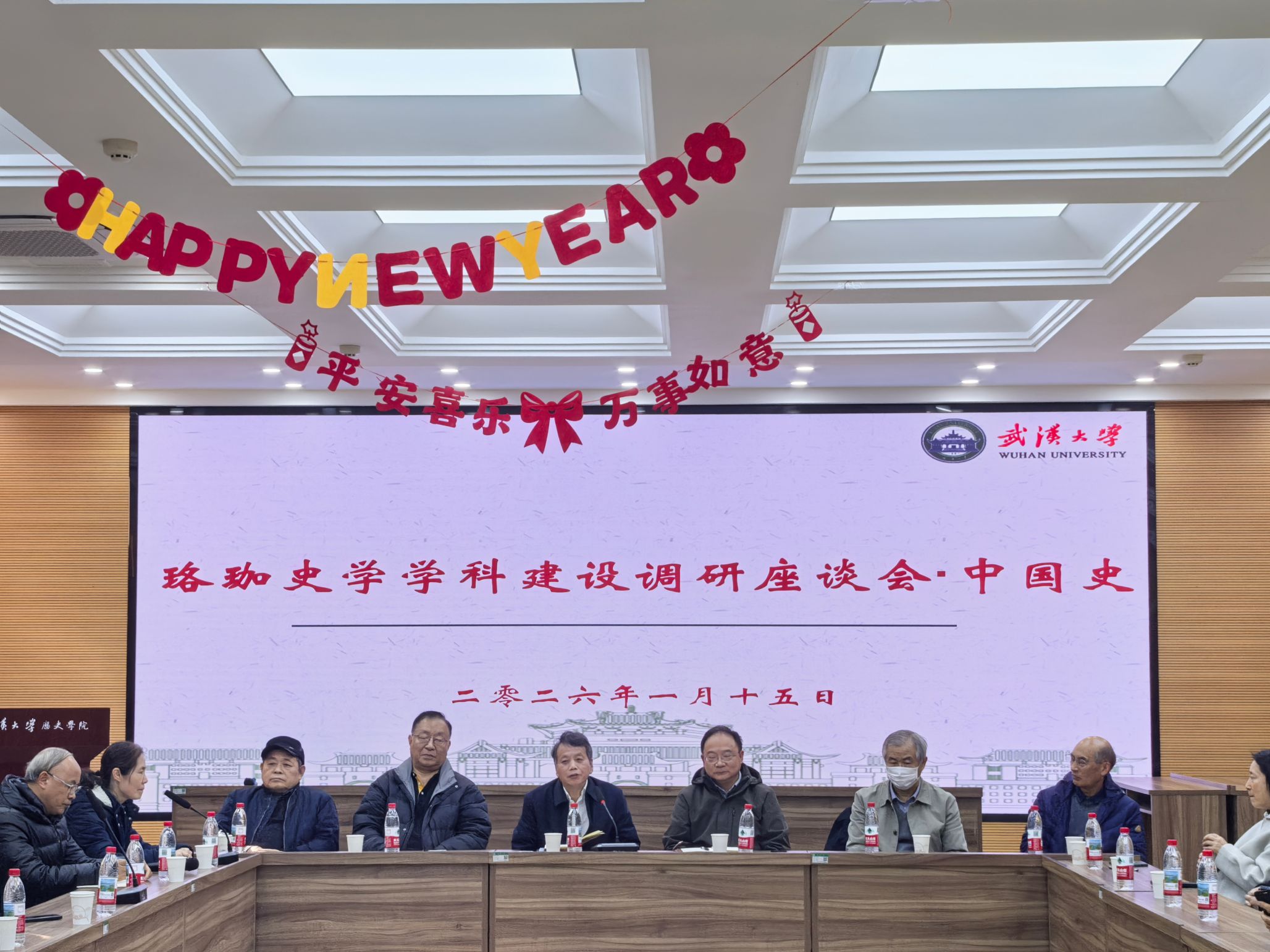 2026年1月15日下午,历史学院党委书记张发林带领学院领导班子与中国史教研室就学科发展与双一流学科建设等重大问题进行了调研座谈。座谈由中国史教研室主任陈曦主持,武汉大学人文社科资深教授陈伟、人文社科院驻院研究员陈锋、徐少华和李少军四位前辈学者与中国史学科教师参加了本次座谈。