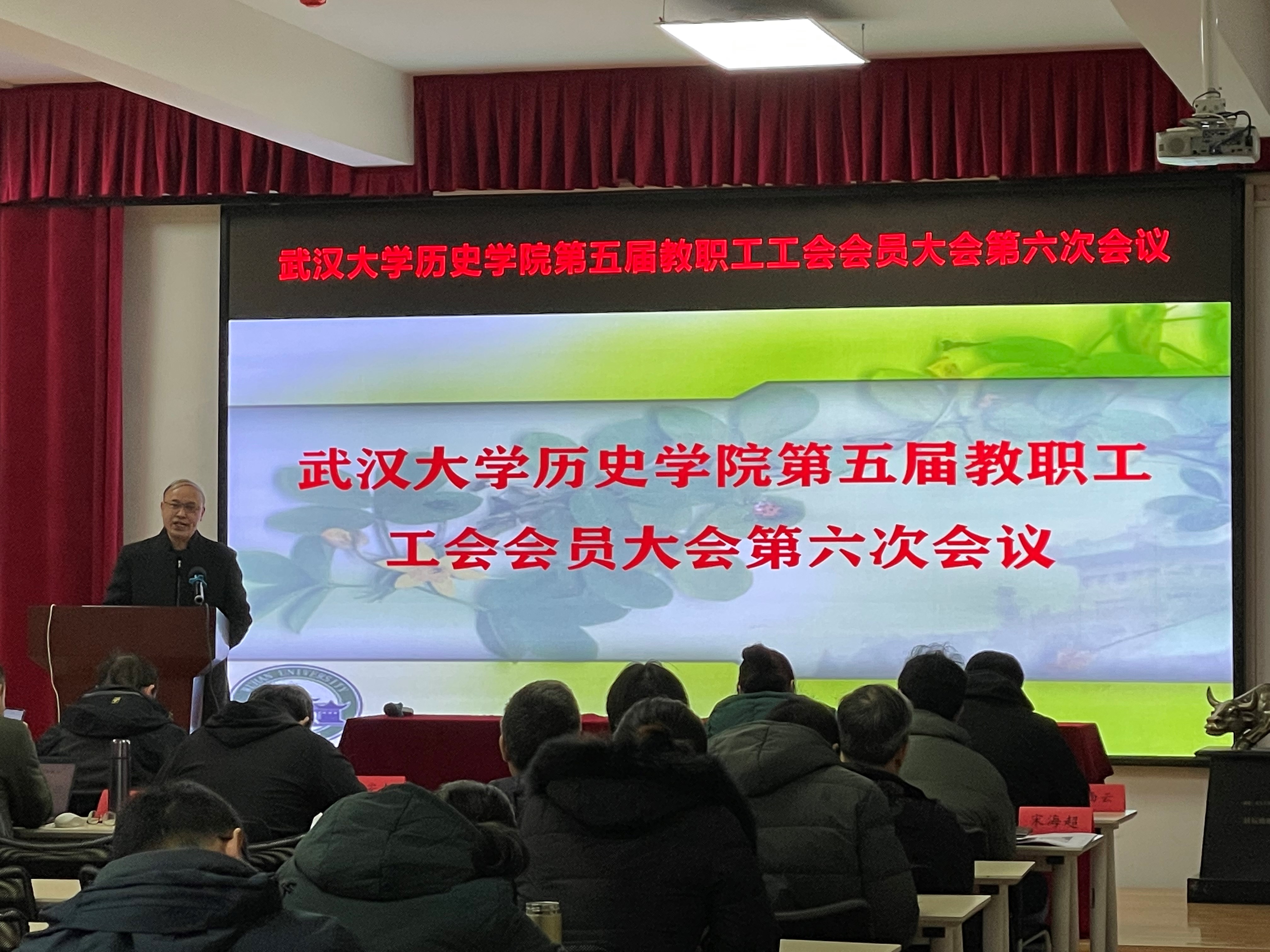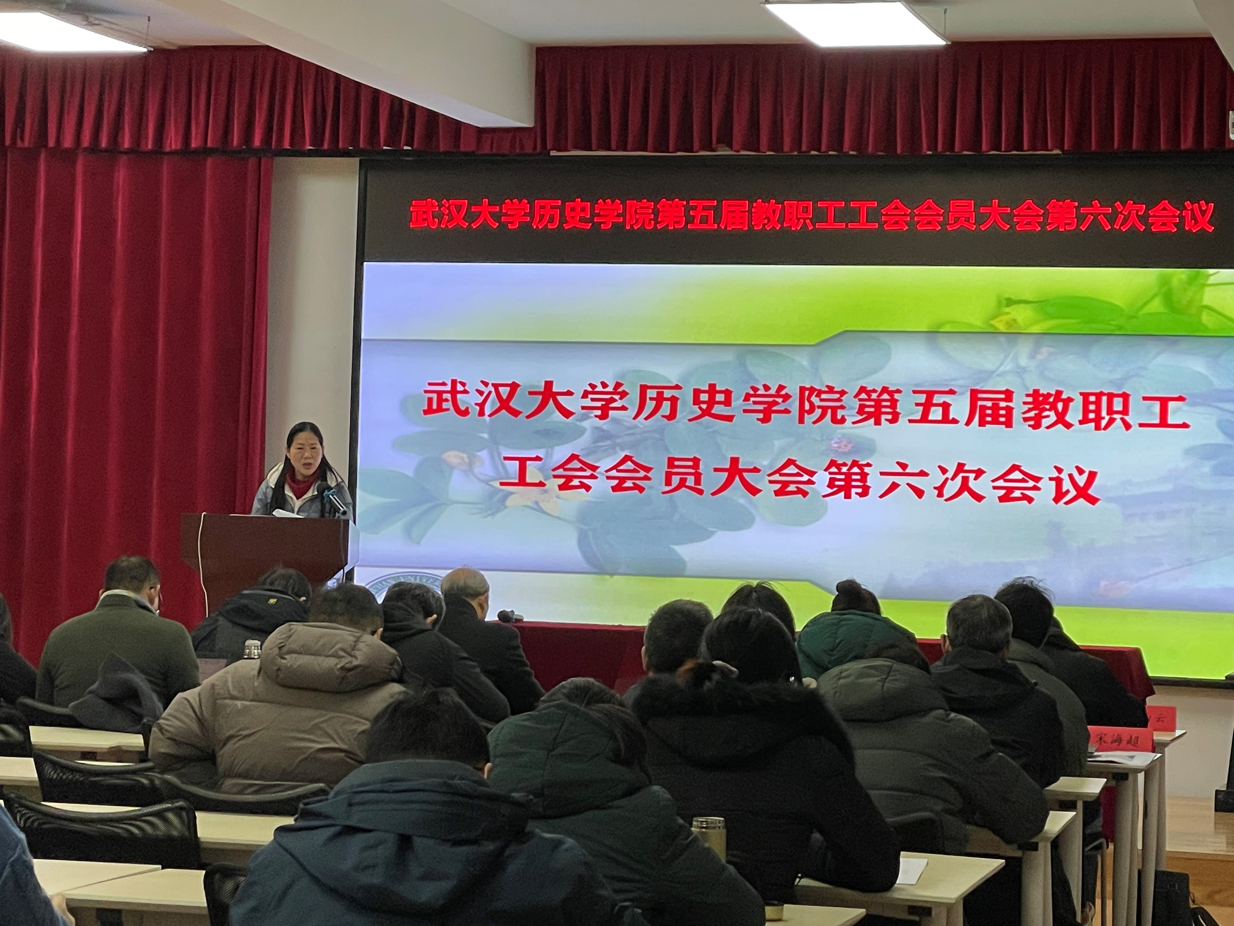 2022年1月11日,历史学院第五届教职工工会会员大会第六次会议在101会议室召开。学院80多位在职教师参会,并特邀退休教师萧致治、罗运环参会。会议由院党委副书记曹盛英主持。